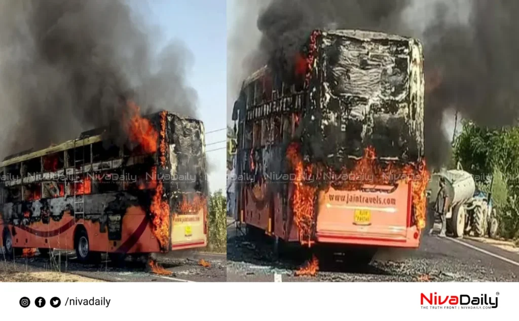 അപകടത്തിൽ ബസ് പൂർണ്ണമായും കത്തി നശിച്ചു. ജോധ്പൂർ ഹൈവേയിലെ തായാത്ത് മേഖലയ്ക്ക് സമീപം ഇന്നലെയാണ് അപകടം നടന്നത്. എ സി ബസ്സിൽ 57 യാത്രക്കാരാണ് ഉണ്ടായിരുന്നത്. ജയ്സാൽമീറിൽ നിന്നും ജോധ്പൂരിലേക്ക് പോവുകയായിരുന്നു ബസ്.